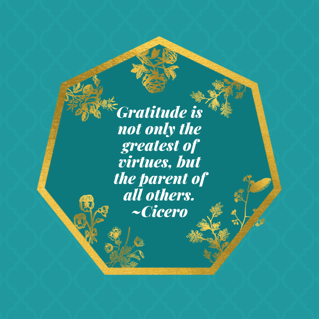 We might be tempted to think that gratitude then is some new age concept, but really it is at the basis of numerous religions, spiritual practices, and philosophies. The concept of gratitude is not new. As an example, the ancient philosophers Seneca and Cicero both made comments on gratitude. In Letters from a Stoic, Seneca said,