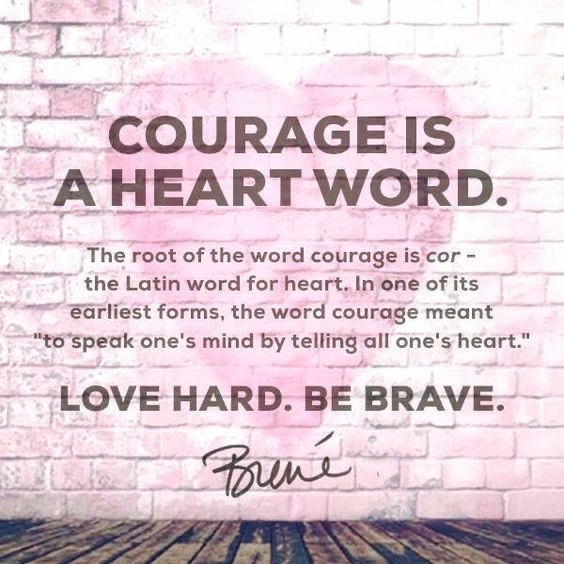 If you are not familiar with Brene’s work, she does a lot on vulnerability. I know—all of this work takes courage, and you have it! I know you have it. One of the quotes that I life from her says, “Courage is a heart word. The root of the word courage is cor—the Latin word for heart. In one of its earliest forms, the word courage meant ‘To speak one’s mind by telling all one’s heart.’ Over time, this definition has changed, and today, we typically associate courage with heroic and brave deeds. But in my opinion, this definition fails to recognize the inner strength and level of commitment required for us to actually speak honestly and openly about who we are and about our experiences—good and bad. Speaking from our hearts is what I think of as ‘ordinary courage.’”